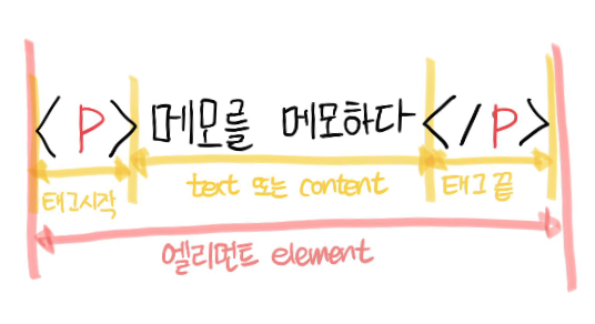 태그의 끝까지를 엘리먼트라고 부른다.