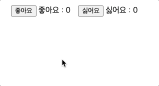 오른쪽에 좋아요 싫어요 개수가 올라가는 간단한 예제이다