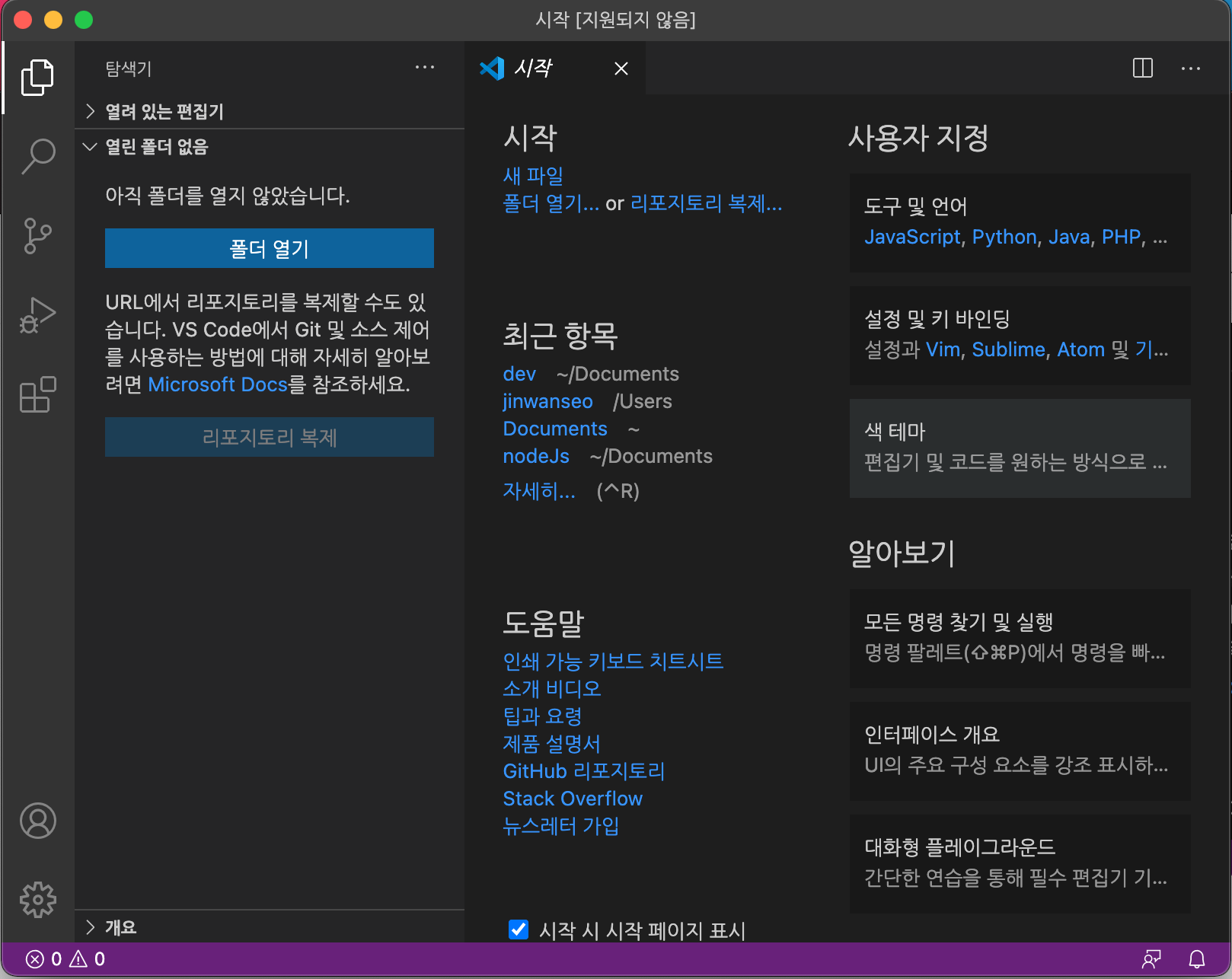 비주얼 스튜디오 코드 (Visual Studio Code) 설치시