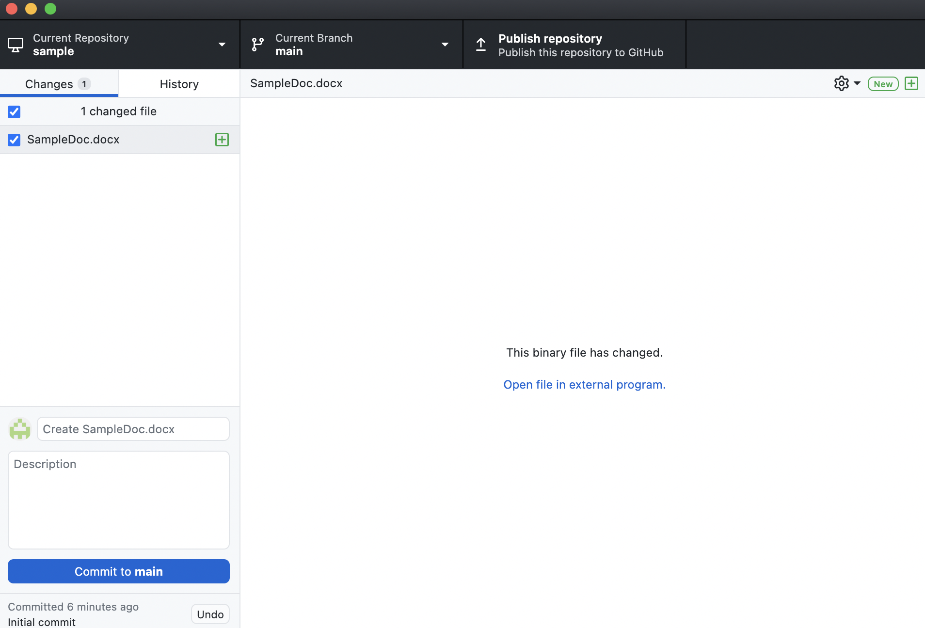 Changes에 방금 생성한 SampleDoc.docx 파일이 보일 것이다.
