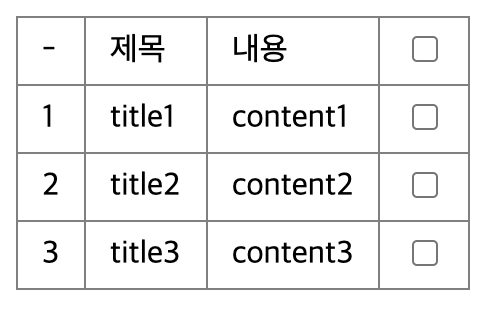 테이블 오른쪽 끝에 있는 체크박스 체크시,