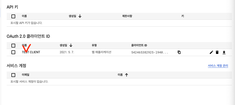 OAuth 2.0 클라이언트 ID 목록 확인 후 이름 클릭