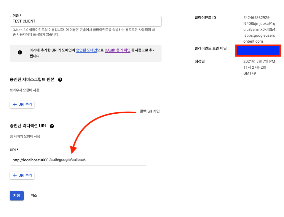 //구글 로그인 후 자신의 웹사이트로 돌아오게될 주소 (콜백 url)