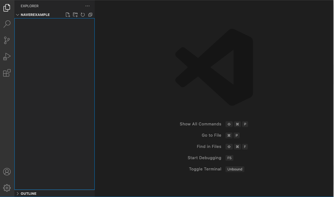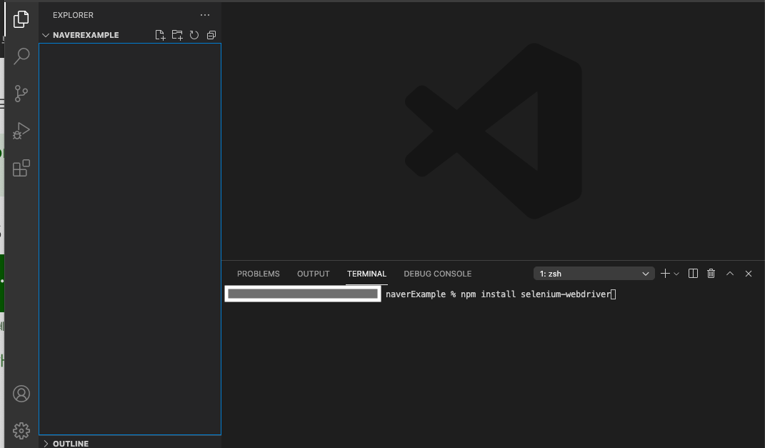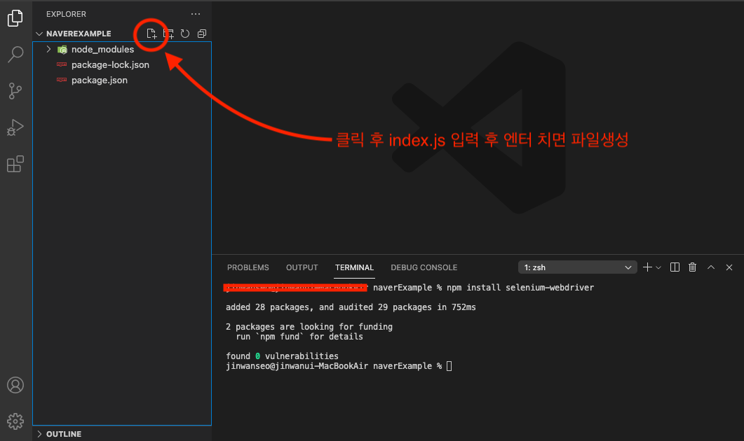 //생성된 터미널 창에 아래와 같이 입력 후 엔터 (설치시 왼쪽에 폴더 몇개 생성됨)